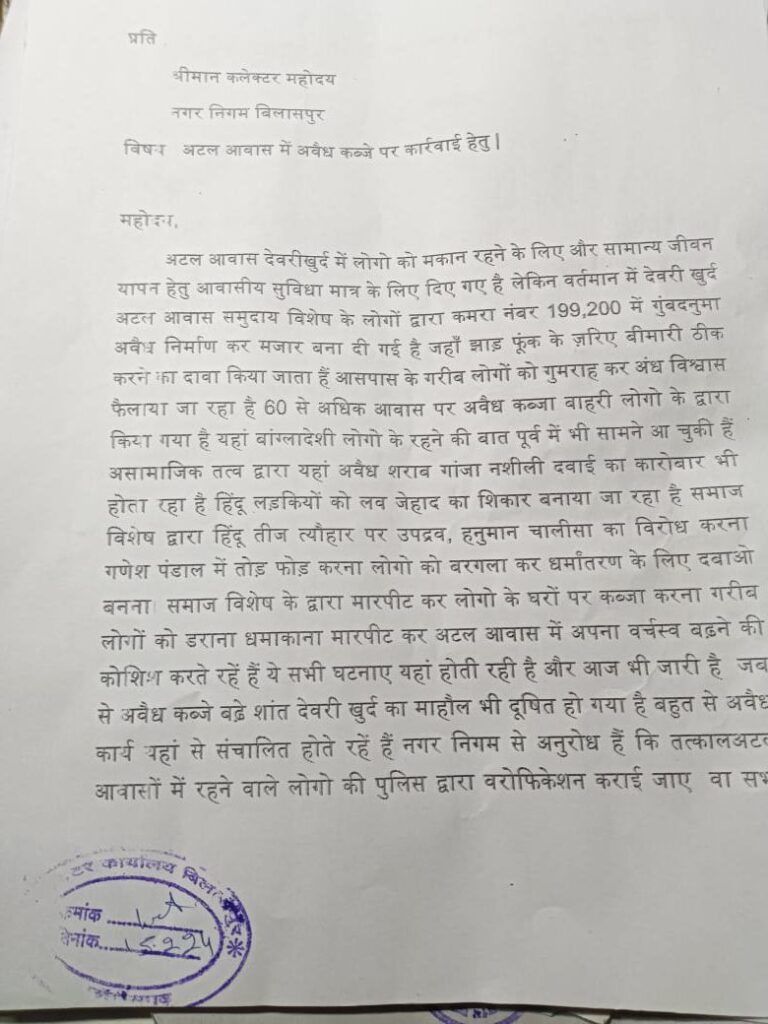 आज पुन : देवरी खुर्द निवासियों ने कलेक्टर और सीएम को पत्र लिखकर कार्यवाही की मांग की है, देवरी खुर्द में हिंदुओ को प्रताड़ित किया जा रहा है हिंदुओ को धार्मिक उत्सव सेलिब्रेट करने से रोका जा रहा है,