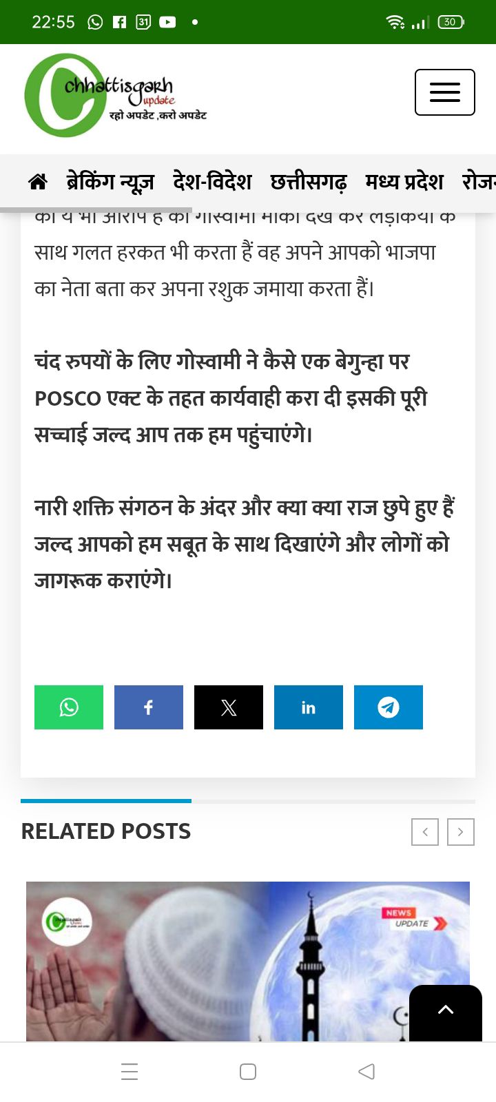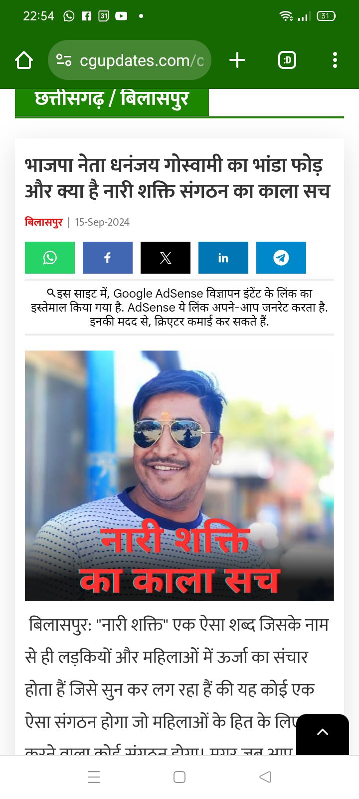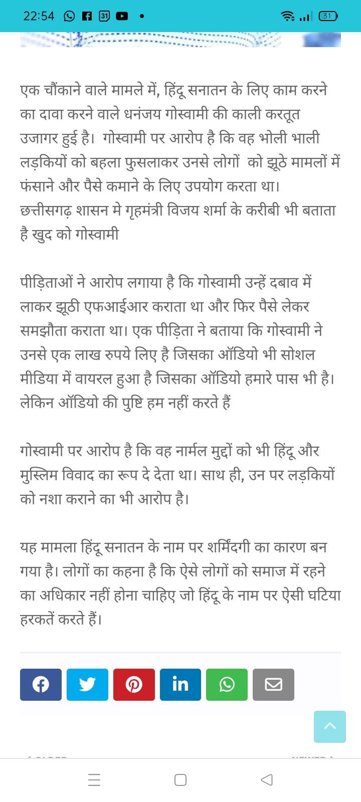 बिलासपुर में दो न्यूज पोर्टल्स द्वारा खबर वायरल है कि, नारी शक्ति टीम के मुखिया धनंजय गोस्वामी के बारे में साक्ष्य विहीन खबर बनाकर वायरल की गई है ! जिसका एकमात्र मकसद हिंदुओ को, हिन्दू संगठनों के छत्रपों को बदनाम कर ठिकाने लगाना प्रतीत होता है ? न्यूज में उल्लेखित दावों के अनुसार