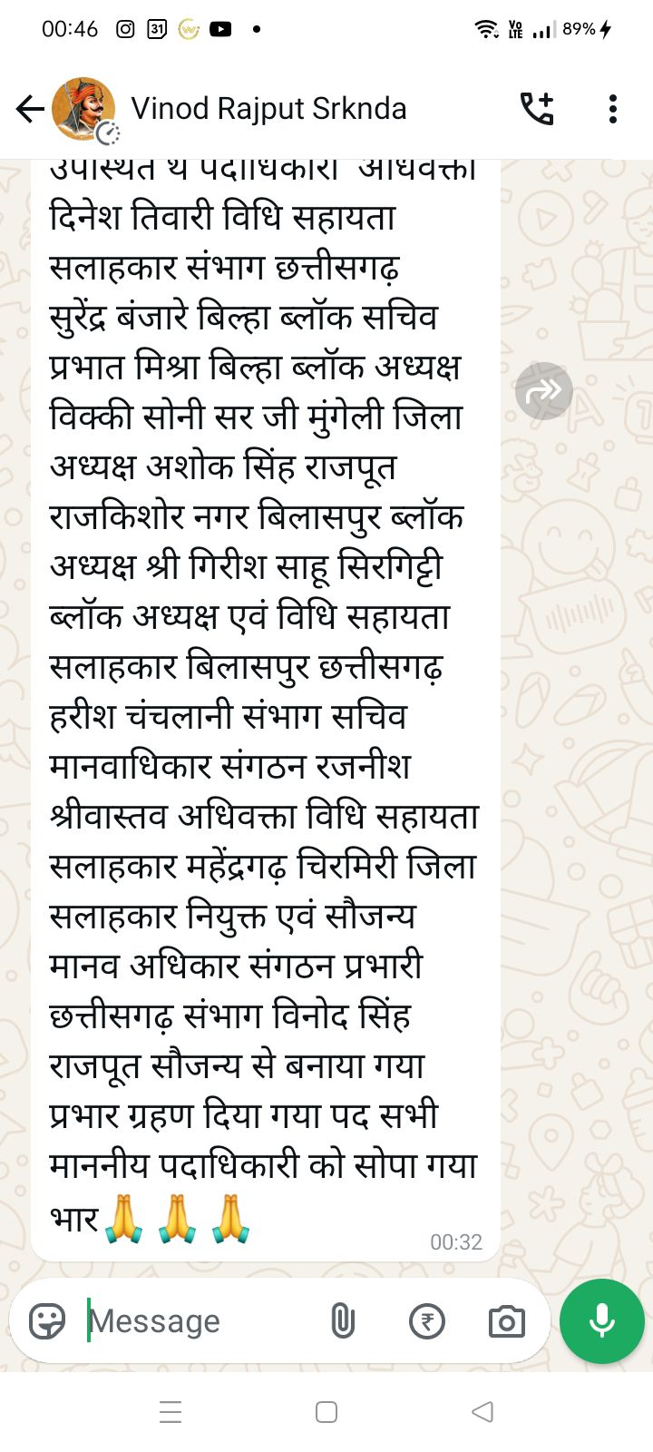 विनोद राजपूत द्वारा हमें प्रभावित करने और सदस्य बनने हेतु आमंत्रण के तहत विनोद राजपुर द्वारा हमें भेजे गए संदेश का स्क्रीन शॉट लगा रहे है !