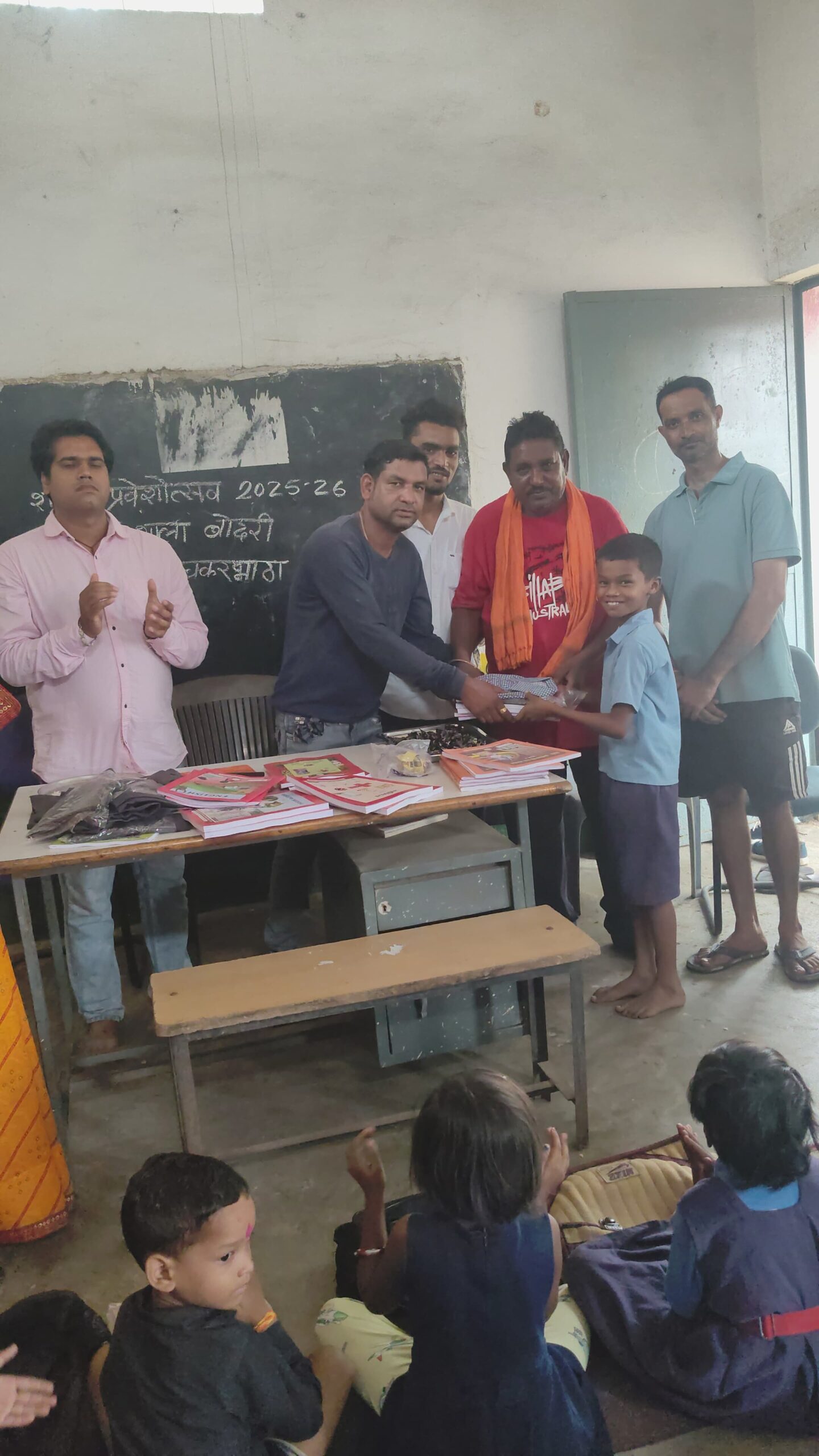 प्राथमिक शाला बोदरी में शाला प्रवेशोत्सव मनाया गया ! जिसमें बच्चों को तिलक लगाकर उनका स्वागत किया गया तथा साथ में बच्चो को गणवेश और पाठ्य पुस्तक भी प्रदान किया गया उपरोक्त कार्यक्रम में शाला के प्रधान प्राध्यापिका श्रीमती शारदा शर्मा , वार्ड क्र. 1 से पार्षद अतुल ध्रुव, वार्ड क्र. 2 से पूर्व पार्षद दीपक वर्मा , वार्ड क्र. 3 के पार्षद फिरतू बनवारे तथा शाला विकास समिति के सदस्य देवेन्द्र कौशिक तथा अभिषेक शर्मा उपस्थित थे !