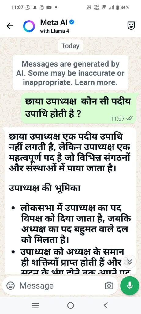 पाठकों की जानकारी हेतु ए आई से प्राप्त जवाब का स्क्रीन शॉट प्रस्तुत है !