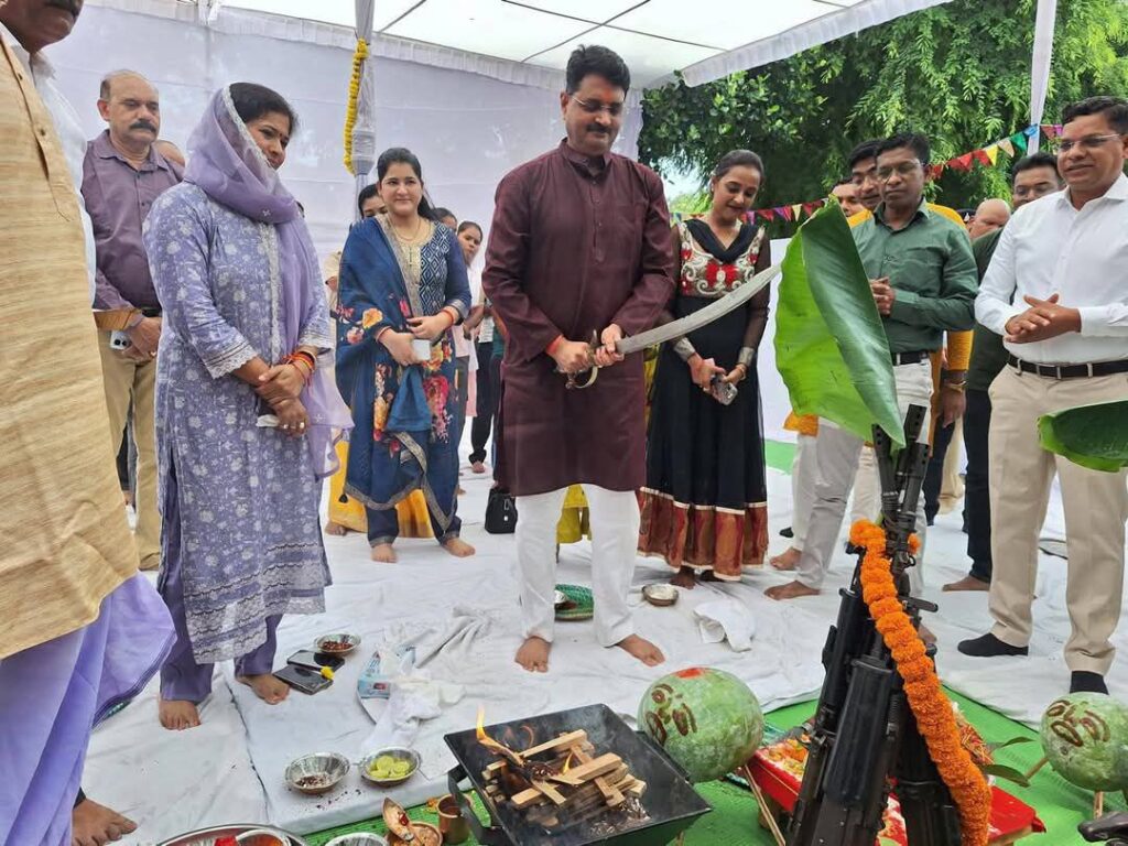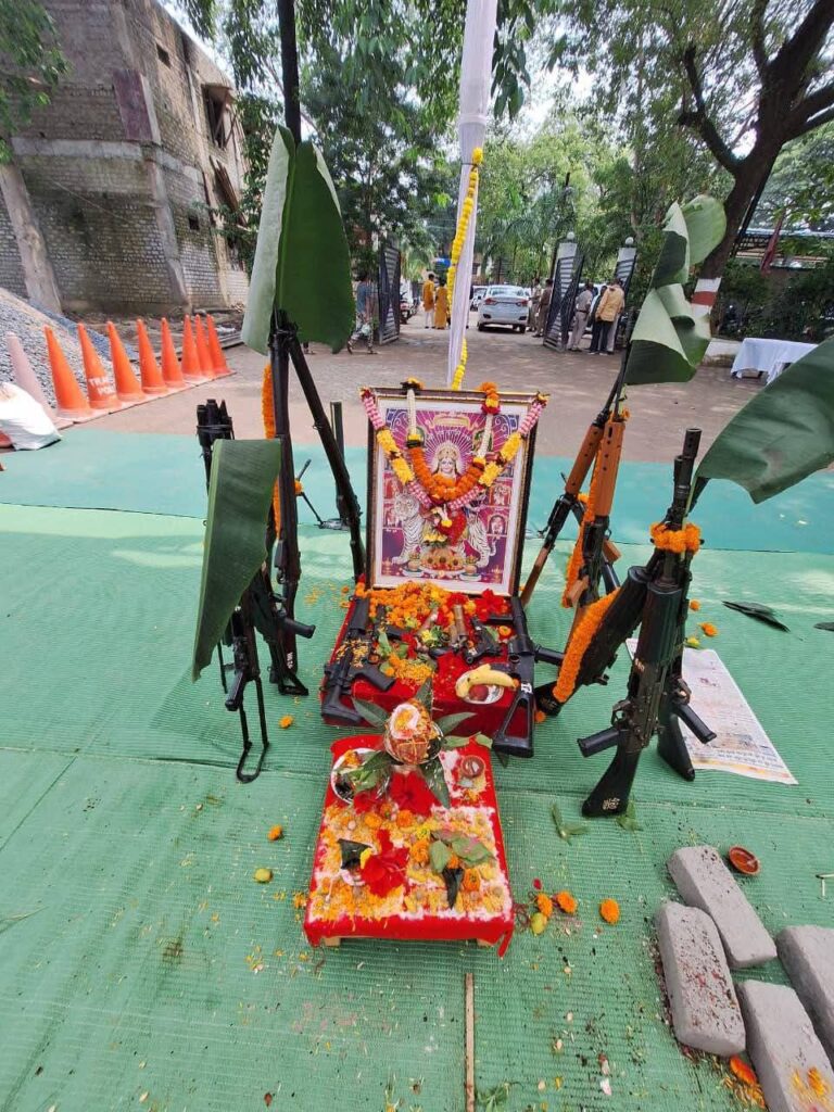 लॉ एंड ऑर्डर हेतु शस्त्र आवश्यक की महत्ता को दर्शाया ?पुलिस कप्तान द्वारा किया गया शस्त्र पूजन !