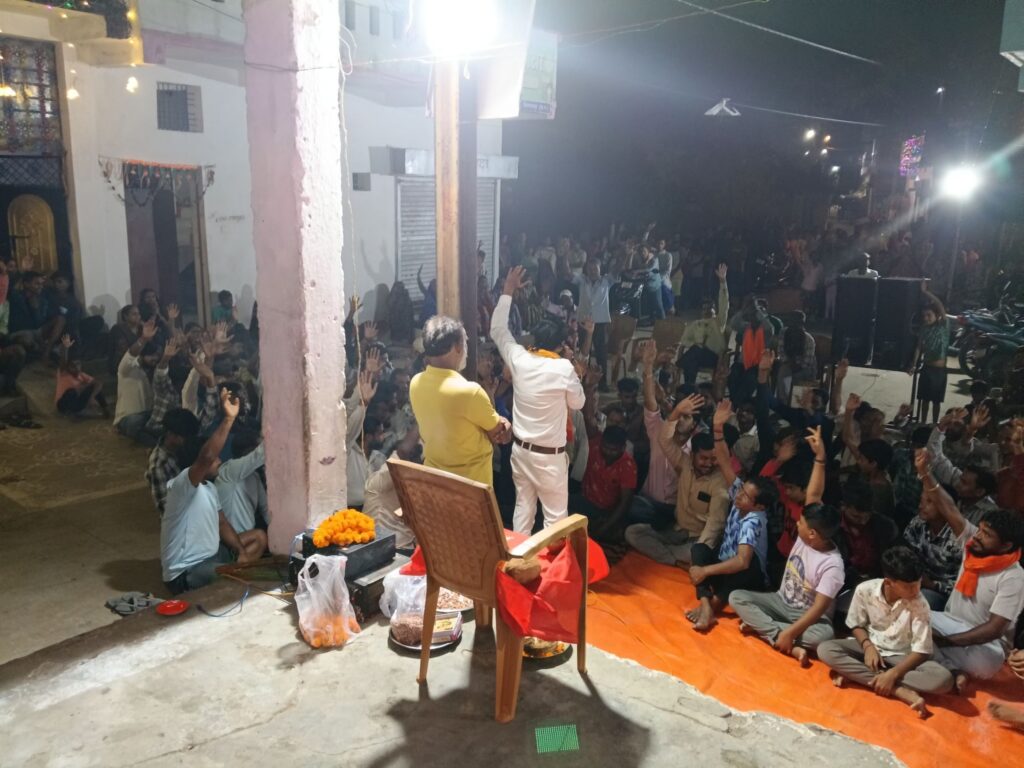 जिसमें वार्ड के लोगों ने बहुतायत में शामिल होकर कार्यक्रम में समापन पर शपथ लेकर प्रतिज्ञा की है कि सनातन की रक्षा हेतु