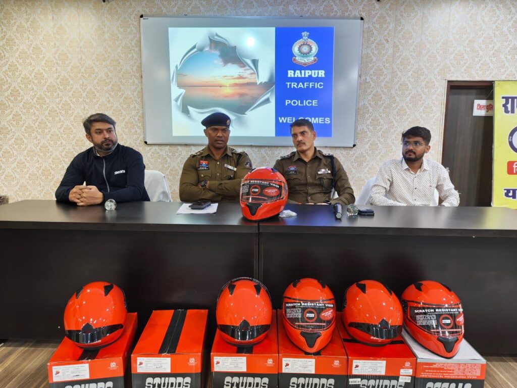 : रायपुर पुलिस ने जोमैटो डिलीवरी बॉयज के बीच बांटे हेलमेट