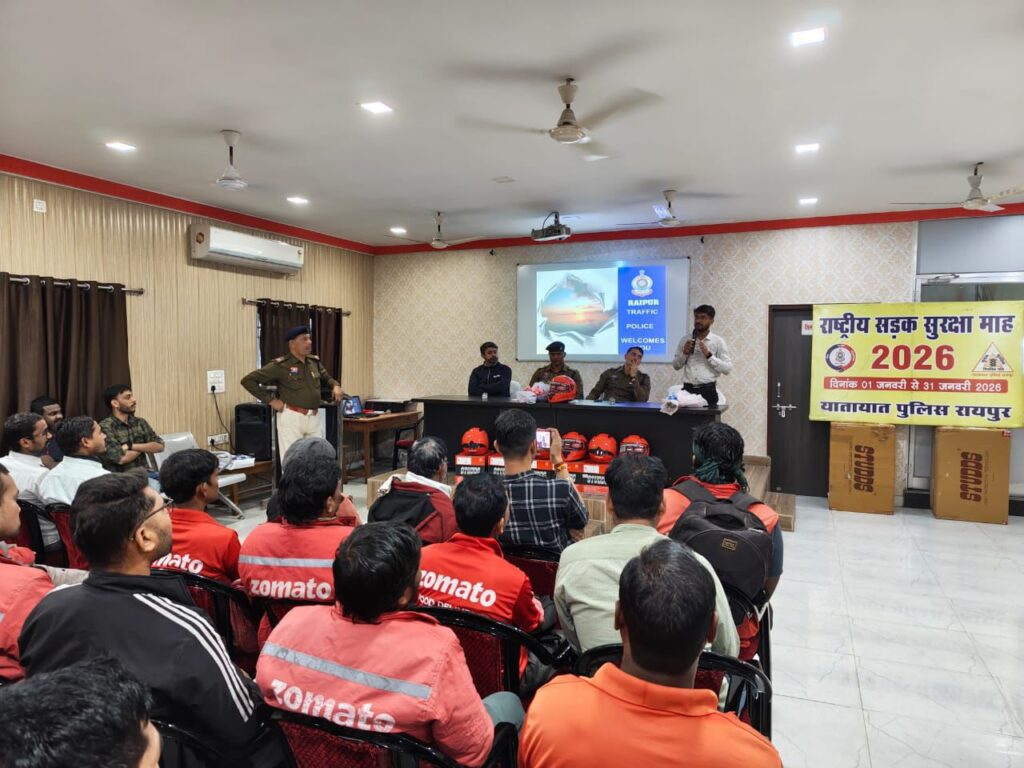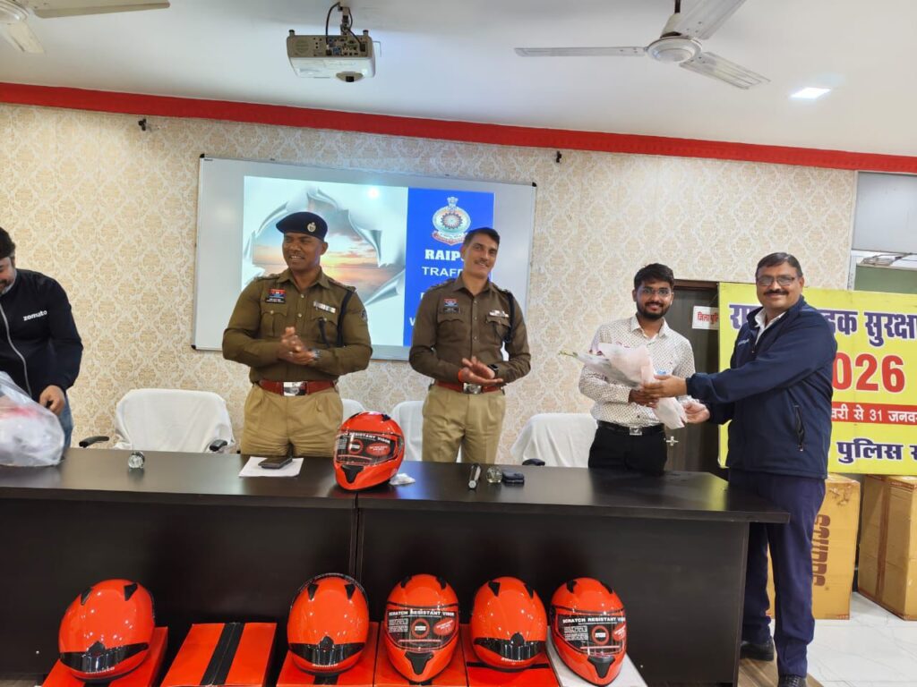 पुलिस ने कहा कि अपने जीवन के महत्व एवं परिवार के प्रति अपनी जिम्मेदारी को समझते हुए अपने आप को सुरक्षित रखने के लिए दोपहिया वाहन चलाते समय हेलमेट का उपयोग अवश्य करें. जोमैटो के डिलीवरी बॉयज की सड़क पर सुरक्षा को ध्यान में रखते हुए जोमैटो कंपनी के रायपुर शहर के सीईओ अभिमन्यु गोयल एवं एरिया लीडर मयंक शर्मा द्वारा सभी जोमैटो डिलीवरी बॉयज को निःशुल्क हेलमेट वितरण करने का निर्णय लेकर यातायात अधिकारियों से वितरण कराया गया.